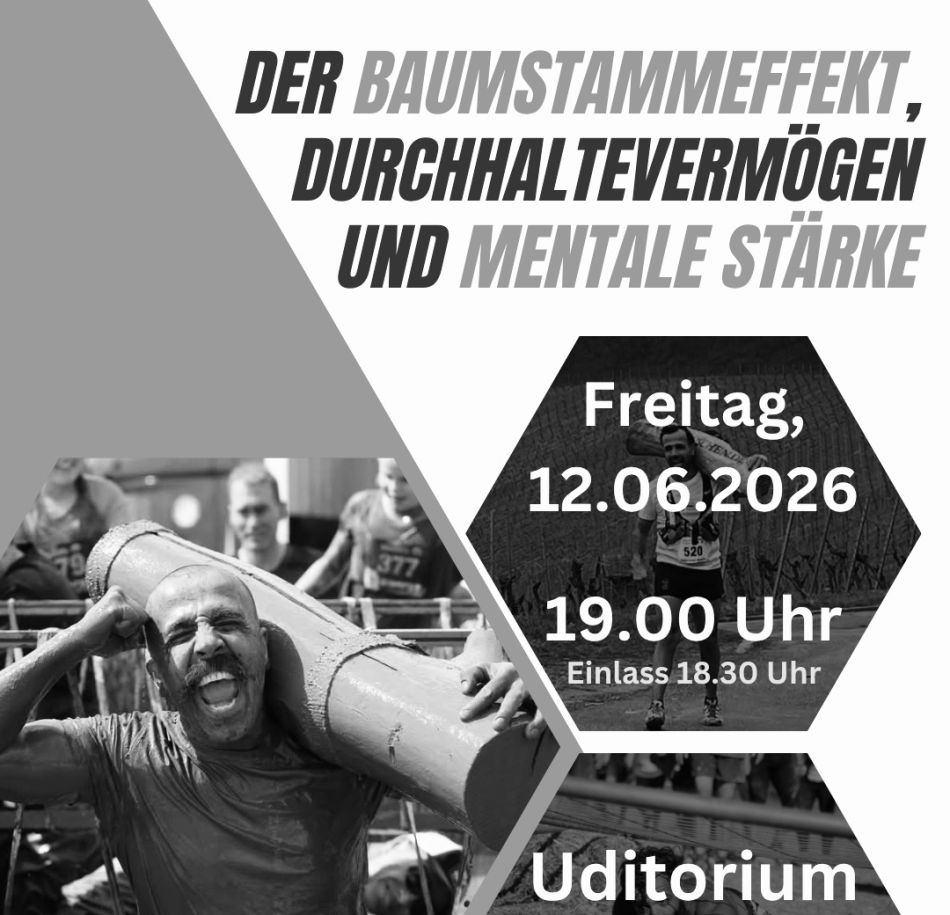 Der Abend verbindet spannende Impulse aus Extremsport, Medizin, Mentaltraining und ganzheitlicher Gesundheit. Im Zentrum steht das eindrucksvolle Bild eines Athleten, der bei seinen Läufen einen Baumstamm trägt.